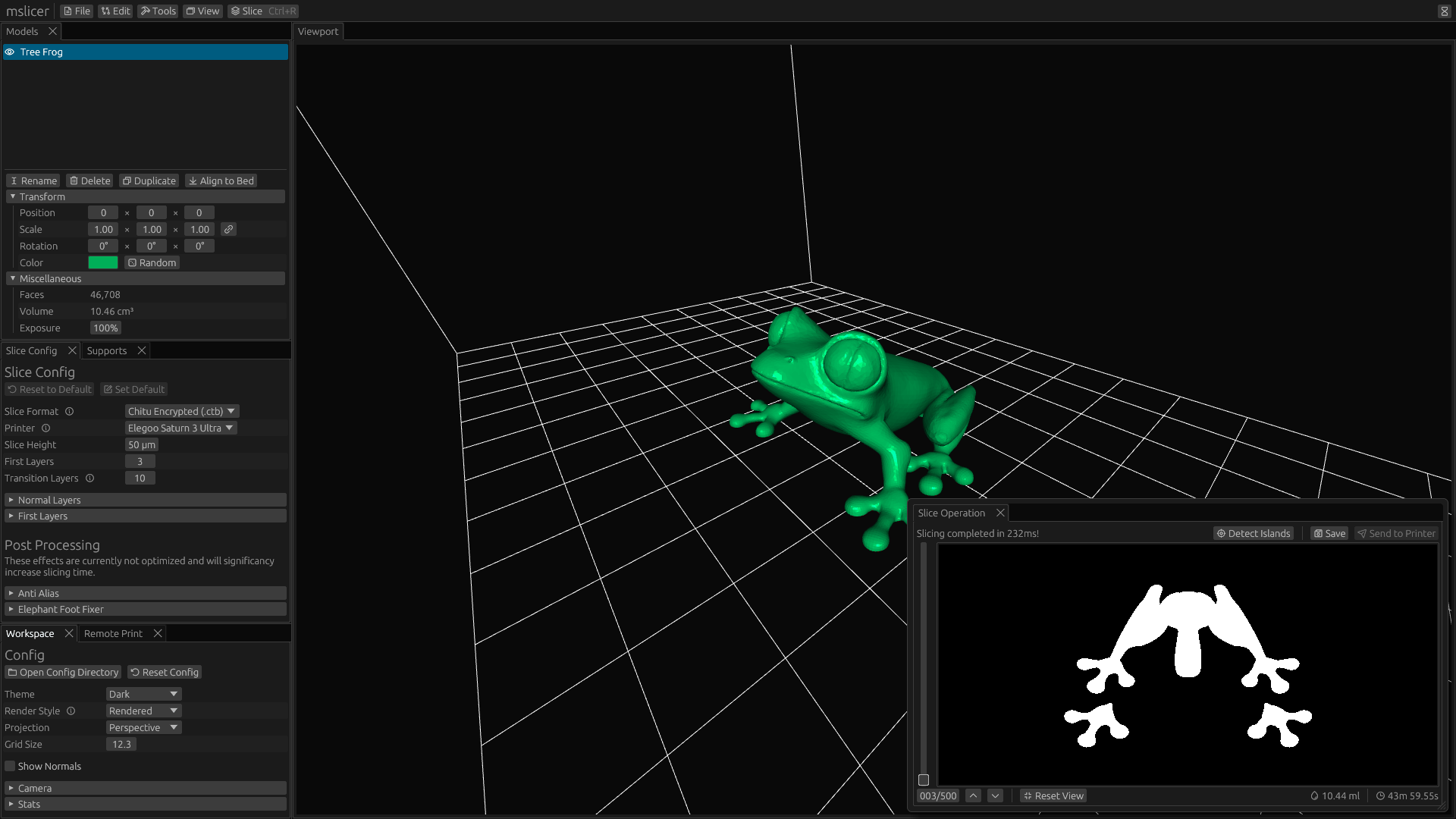 There aren't really any open-source slicers for resin printers. Most existing options are closed-source, expensive, slow, require accounts, limit usage, don't support Linux, or even have built-in ads. mslicer exists to be the opposite of that. It's fully open source (GPL-3.0) and will never include any analytics or require an account.